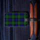 Étiquette élégante de bagage faite dans le motif noir écossais traditionnel de plaid de tartan de montre. Un secteur blanc bordé vert des textes, sur l'avant a le texte vert prêt à personnaliser avec votre information. La manière parfaite de repérer votre bagage, et fait une grande idée de cadeau.