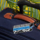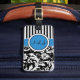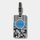 Étiquette À Bagage Étiquette rayée noire, blanche, bleue de bagage de