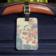 Tenez-vous indépendamment des autres étiquettes de bagages avec ce hankie vintage comportant les rubans bleus d'ardoise et les fleurs roses de marguerite. Personnalisez le dos avec votre information.