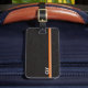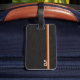 Étiquette À Bagage Faux Black Leather Monogram Orange Bar
