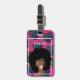 Ce design présente des feuilles colorés de monstères tropicales, et une beauté naturelle avec des cheveux bouclés noirs, sur un arrière - plan rose chaud. Customisez avec votre nom et vos coordonnées. Voyages sûrs !