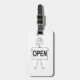 Étiquette À Bagage Figure de bâton drôle tenant le signe ouvert