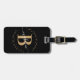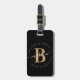 Fille, minimaliste, simple, moderne, noir et or monogramme nom initial script personnalisé monogrammed bagage tag. Doté d'une initiale monogramme et d'un script de signature de nom de poutre dans une police calligraphique manuscrite avec des queues d'échange et un cadre en cercle pointillé autour de votre monogramme.