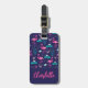 Étiquette À Bagage Flamant rose Été bleu rose Monogramme