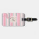 Étiquette À Bagage Flamant rose rose, Monogramme rayé Personnalisé