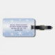 Faites ressortir vos bagages sur un carrousel d'aéroport avec des étiquettes uniques ! Cette belle étiquette à bagages d'hiver crée une sensation saisonnière en bleu et blanc avec de jolis flocons de neige flottant partout. Le dos contient vos renseignements personnels et plus de flocons de neige. Tout le texte peut être customisé.