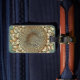 Étiquette À Bagage Fleur de soleil sur le Arrière - plan bleu-vert