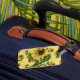 Marque à bagages avec vintage tournesol jaune arrière - plan avec couverture de grand tournesol simple