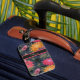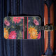 Bagage vintage lumineux à fleurs rose, orange et violet sur un arrière - plan gris foncé. Le détail de trait fournit le contraste, Ajoutez votre propre texte, nom ou initiales personnalisés.