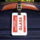 Identify your bags instantly with this high visibility red and white caution luggage tag. Designed to look like a professional shipping label, this tag features a bold glass warning and handle with care message to encourage gentle treatment by baggage handlers. A must-have for frequent flyers or anyone moving house, this accessory enhances transport safety for your personal belongings. Ensure your suitcase stands out on the carousel with this clear, protective marking that guards your delicate contents throughout your journey.