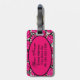 Étiquette À Bagage Fuchsia rose noir gris parisien Damask Monogramme