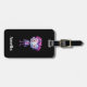 Une étiquette de bagage avec une jolie illustration. Monstre Frankenstein aux cheveux roses et violets et costume et cravate en dapper.