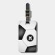 Cette étiquette de bagage sur le thème du football est simplement conçue avec une seule balle de football noir et blanc abstraite agrandie - personnalisez avec monogramme sur le devant, adresse les informations sur le dos - par katz_d_zynes