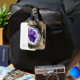 Le design élégant des étiquettes de bagage est parfait pour ceux qui dans l'industrie de la gemme et des arts lapidaires, des événements tels que la gemme & minéral, ou pour ceux qui vendent des cristaux de guérison et ainsi de suite. Avant dispose d'une géométrie améthyste violette (conception créée avec logiciel de rendu AI) avec espace pour ajouter votre nom d'entreprise customisé ou un autre message.