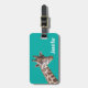 Étiquette À Bagage Girafe animal sur vert Turquoise