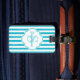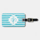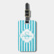 Étiquette À Bagage Girly Turquoise Peint Stripes Monogramme et nom