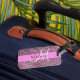 La parties scintillant violet de verre brille le nom blanc monogramme et la marque de bagages initiale. Votre nom personnalisé et votre monogramme sont écrits dans un élégant script écrit à la main avec un arrière - plan rose. Vous pouvez modifier la couleur du texte, le style et la taille de police à l'aide de l'option personnaliser. Un cadeau d'anniversaire ou de Noël parfait !