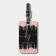Sylish, Girly, Elegant, Light Rose Gold Parties scintillant Drips 2 Monogram Script personnalisé nom monogrammed bagage tag sur noir. Doté d'un cadre d'égouttement de parties scintillant d'or rose pâle moderne, d'une grande police de script monogramme à double main avec swashes (initiales de grande taille), et d'un nom de police de type serif en rose pâle sur arrière - plan noir. Facile à personnaliser.