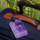 Customisez le script de style manuscrit moderne pour créer votre propre étiquette de sac. Ajoutez une initiale de monogramme pour créer une combinaison initiale de prénom. Parties scintillant mauve faux améthyste et art numérique en métal brossé qui s'imprime comme une photo sur votre dessin. Enrouleur de matériel de voyage.