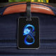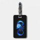 Luminous infinity symbol with glowing, beautiful, lushly blooming rose made of blue flames on black background.