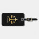 Une étiquette de bagage avec une image de balance dorée sur un arrière - plan noir. Simple et élégant.