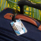 Étiquette À Bagage Goldendoodle En Costume De Requin