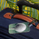 Marque bagage avec une image de haute qualité d'une balle de golf blanche sur un tee blanc devant un arrière - plan vert.