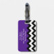 Étiquette À Bagage Gras Noir Blanc Zigzag Stripes & Eggplant Violette