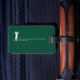 Dark green background, personalized with his name and custom words (Golf Club name, a slogan, or any other info). A cool and elegant design for a golfer... to travel in style.