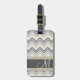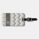 Étiquette À Bagage Gris & Linge Beige Chevron Motif avec Monogramme