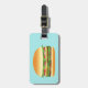 Cette étiquette de bagage présente une délicieuse illustration de dessin animé d'un hamburger. Le hamburger est fait de viande, laitue verte, tomates rouges, oignon, tranche de fromage et quelques cornichons. Le petit pain a l'air frais et il y a des graines de sésame sur le dessus. De l'autre côté, il y a une zone de texte personnalisable pour les informations de nom et d'adresse.