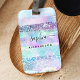Cette étiquette à bagages élégante et glamour présente des rayures abstraites de faux parties scintillant, holographique brillant en bleu turquoise, rose et violet. Ajoutez votre nom dans un script manuscrit tendance!