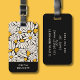 Étiquette À Bagage Impression de bloc jaune noir rétro floral