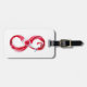 Infinity symbole of continuous stream of red pouring into glass glass glass on white background.