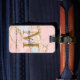 Étiquette de bagage personnalisée élégante moderne girly dorée pailletée rose blush agate géode monogramme initiale nom écriture personnalisée. Ce design présente un prénom dans une jolie calligraphie à queue (ou typographie) avec monogramme initial, nom complet, informations d'adresse sur fond géode marbre agate rose blush doré pailleté. Celles-ci sont faciles à personnaliser. Cadeau féminin élégant pour mariage, anniversaire sweet 16, enterrement de vie de jeune fille, remise de diplôme, et pour quiconque aime le style glamour.