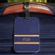 Bleu marine élégant avec un cadre de couleur or imitation. Personnalisez et ajoutez vos lettres monogrammes, initiales. Lettres de couleur dorée.