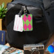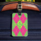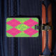 Étiquette À Bagage Jacquard rose et vert monogramme
