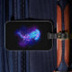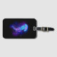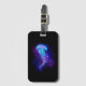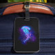 Grande méduse bleue, artistiquement dessinée, brillante, brillante, avec de longues tentacules sur arrière - plan noir avec bioluminescence violette. Méduse brillante.