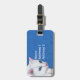 Cette étiquette à bagages personnalisée pour vos valises est d'une couleur bleue avec un joli chat blanc avec un nez rose et des yeux bleu vif. Customisez votre nom et votre adresse avec le modèle.