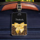 Étiquette À Bagage Joli Empreinte de léopard Elegant Jaune Bow et nom