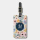 Étiquette À Bagage Joli Monogramme Floral Rose Bleu