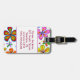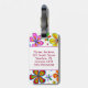 Marque à bagages design d'art de grandes fleurs. OEuvre d'art originale de grandes fleurs aux couleurs vives des deux côtés. Le texte modèle est rose rougeâtre foncé sur blanc et est vertical pour faciliter l'affichage.
