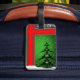 Arbre d'hiver de Noël avec une bordure rouge croisée et un arbre de tatouage en silhouette noire.