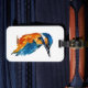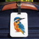 traditional watercolor artwork of a colorful kingfisher bird in blue and orange watercolors.