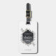 Cette étiquette à la mode et inspirée de bagage pour le voyageur comporte un regard noir de tableau et un cadre géométrique d'or de faux, avec le manuscrit manuscrit blanc moderne qui indique la citation "et ainsi l'aventure commence." La conception apparaît sur un arrière - plan blanc, avec le vert tiré par la main d'aquarelle laisse entourer le cadre aussi bien que sur l'arrière, faisant ce parfait pour n'importe quel amant aventureux de voyage !