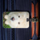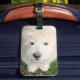 Étiquette À Bagage Le Chiot De Goldendoodle En Regardant La Caméra
