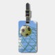 Le football a tiré dans le filet de but avec le ciel bleu et les nuages blancs comme arrière - plan. Symbole des succes dans le sport. La boule a le noir avec les couleurs blanches, la partie est au soleil et la partie est dans l'ombre. La photo exprime la vitesse, les succes, la victoire et le gain