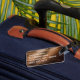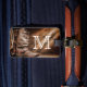 Le garçon de vache initialise l'étiquette rustique de bagage d'initiale de monogramme de lasso de grain en bois de corde de pays de dent