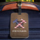 À qui est ce sac ? C'est celui d'un géologue américain ! Cette étiquette de bagage présente une conception classique de marteau de roche croisée sur un bouclier, et ornée du bon vieux drapeau des États-Unis! Ci-dessous, c'est un endroit pour votre nom, que vous pouvez facilement ajouter dans la boîte ci-dessus!