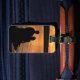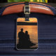 Customisez facilement le texte à l'arrière de cette étiquette de bagage photographique d'art qui présente deux amoureux en silhouette profitant du coucher de soleil au lac Cayuga à Ithaca, NY. C'est l'un des lacs Finger de l'état de New York. Belle orange, jaune et or colorent les vagues et ondulent dans un motif abstrait. Faites ressortir vos bagages sur un carrousel d'aéroport avec des étiquettes uniques !